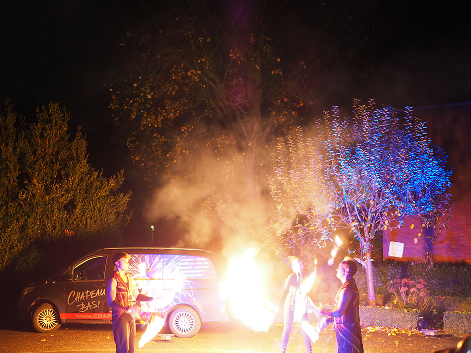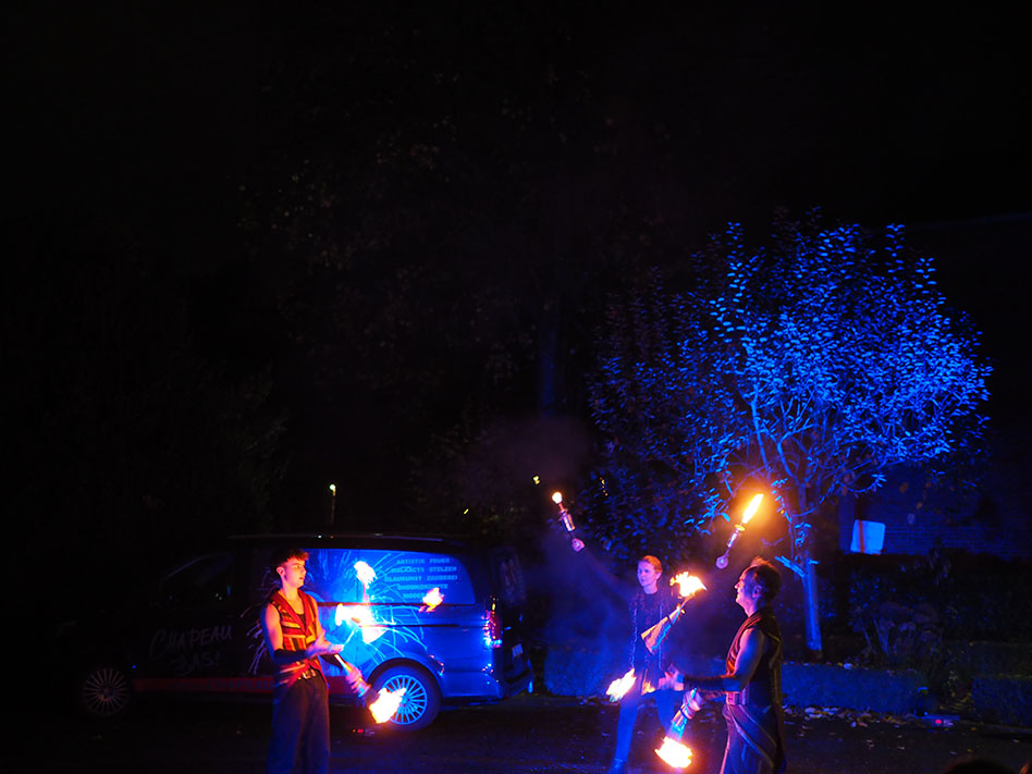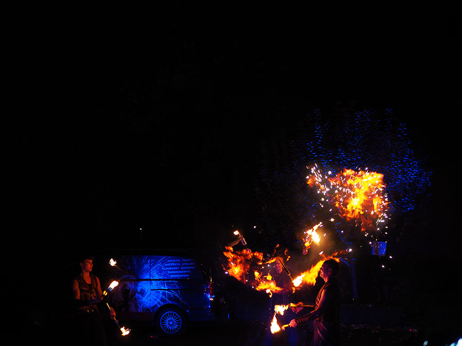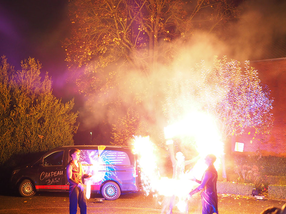 Auch in diesem Jahr gab es für die Besucher gutes Essen, wie z.B. die selbst hergestellten Pommes oder köstlichen Flammlachs. Handgemachtes, schöne Kleinigkeiten und Mitbringsel oder glitzernden Schmuck und beleuchtete Stelen aus Metall konnten unter Anderem an den Holzhütten erworben werden. Auch Waffeln und warme Getränke wurden wieder gerne an den Stehtischen und im Zelt in geselliger Runde genossen und halfen gleichzeitig, das Hospiz zu unterstützen. Für die Kinder gab es eine Feuerstelle mit Stockbrot und als besonderes Highlight am Sonntagabend gestaltete die Künstlergruppe Chapeau Bas eine Feuer- und Lasershow und erhellte mit ihrer Darbietung den Vorplatz des Hospizes. Das sorgte nicht nur für leuchtende Kinderaugen und bot einen perfekten Abschluss für ein erfolgreiches, kuscheliges und ereignisreiches Wochenende.